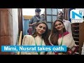 Newly-elected Trinamool Congress MPs Nusrat Jahan Ruhi and Mimi Chakraborty Tuesday took oath as members of the Lok Sabha.The two actors-turned-politicians could not take oath as Nusrat Jahan recently got married to businessman Nikhil Jain and Chakraborty also attended the ceremony in Turkey.
